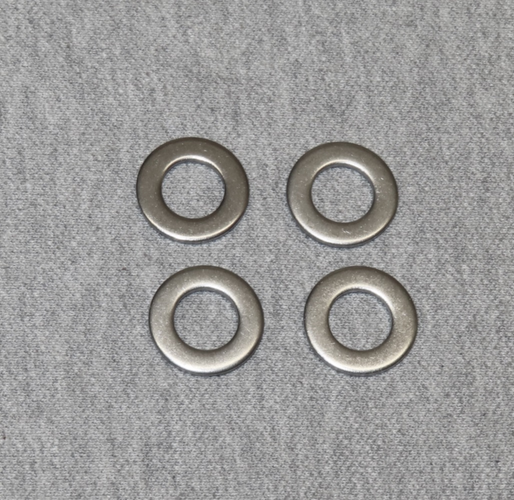 Stainless Steel shock washer set for Ducati bevel singles. Washers have a 12mm ID and fit on the shouldered shock mounting studs. Sold in a bag of 4.